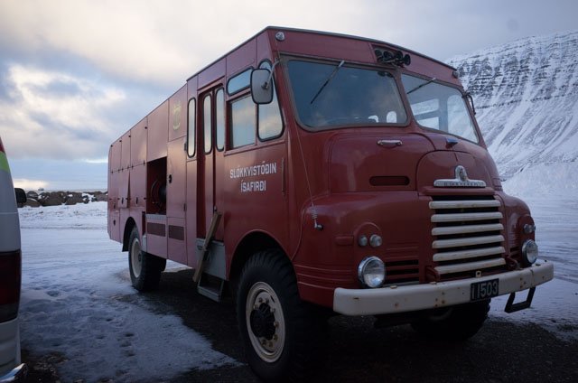 Bifreiðin kom til Suðureyrar í tengslum við magnkaup á slökkvibifreiðum frá Bretlandi á árunum 1970-1975.