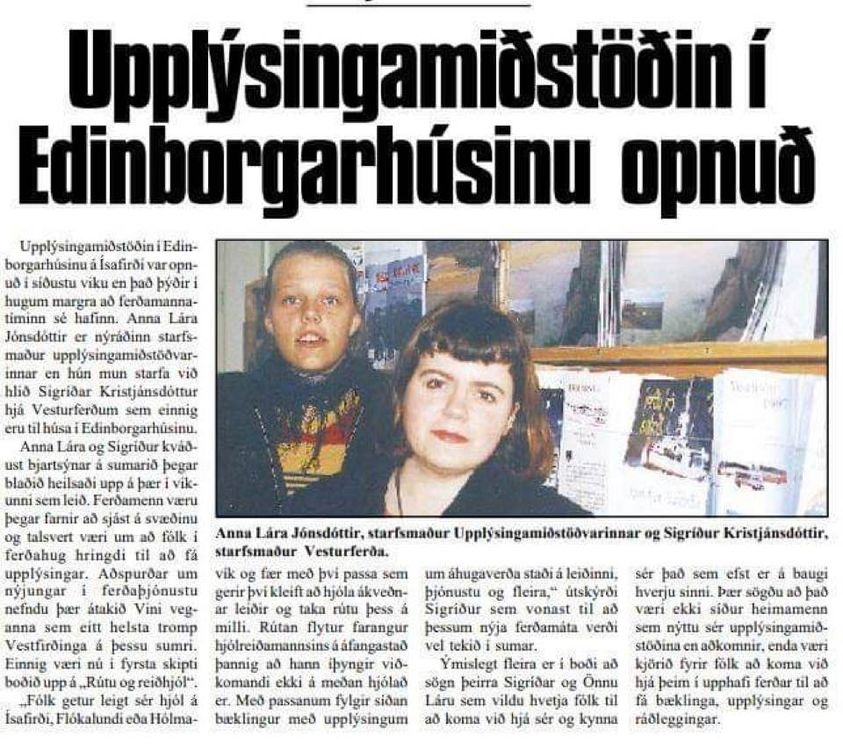 Starfsemi upplýsingmiðstöðvarinnar hefur breyst mikið frá því að ég vann þar tvö sumur seint á síðustu öld. Segja má að fyrsta vikan í júlí hafi þá markað upphaf ferðamannastraumsins sem var nánast allur um og eftir verslunarmannahelgi. Þar hófst samstarf mitt og Sirrýjar sem er framkvæmdastjóri Vestfjarðastofu, og erum við enn að vinna saman að hagsmunum Vestfirðinga.