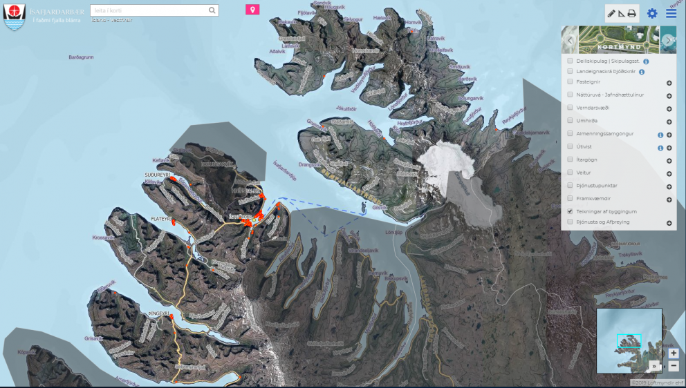 Nú er hægt að skoða uppdrætti af nær öllum byggingum í Ísafjarðarbæ í kortasjá sveitarfélagsins. Til að skoða teikningar er hakað við „Teikningar af byggingum“ í valmyndinni hægra megin og þá er hægt að velja byggingu á kortinu.