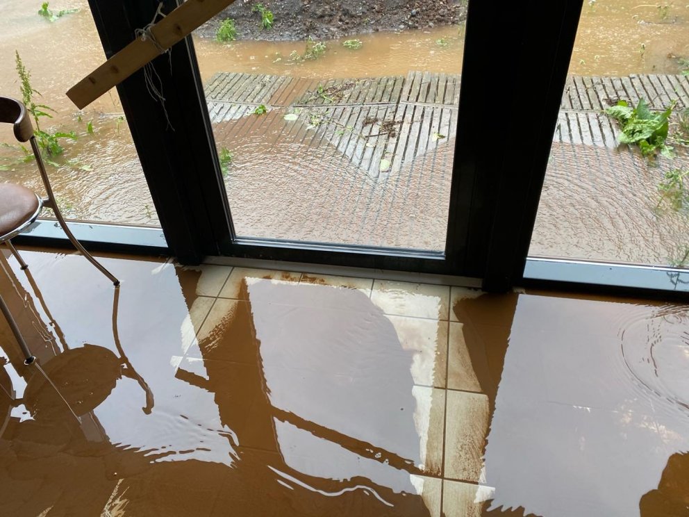 Mikið vatn flæddi inn í íþróttahús, tengibyggingu og sundlaug Suðureyrar með tilheyrandi tjóni í veðrinu sem gengið hefur yfir Vestfirði undanfarinn sólarhring og hefur því sundlaug og íþróttahúsi verið lokað. Í grunnskólanum flæddi vatn inn í kjallarann.