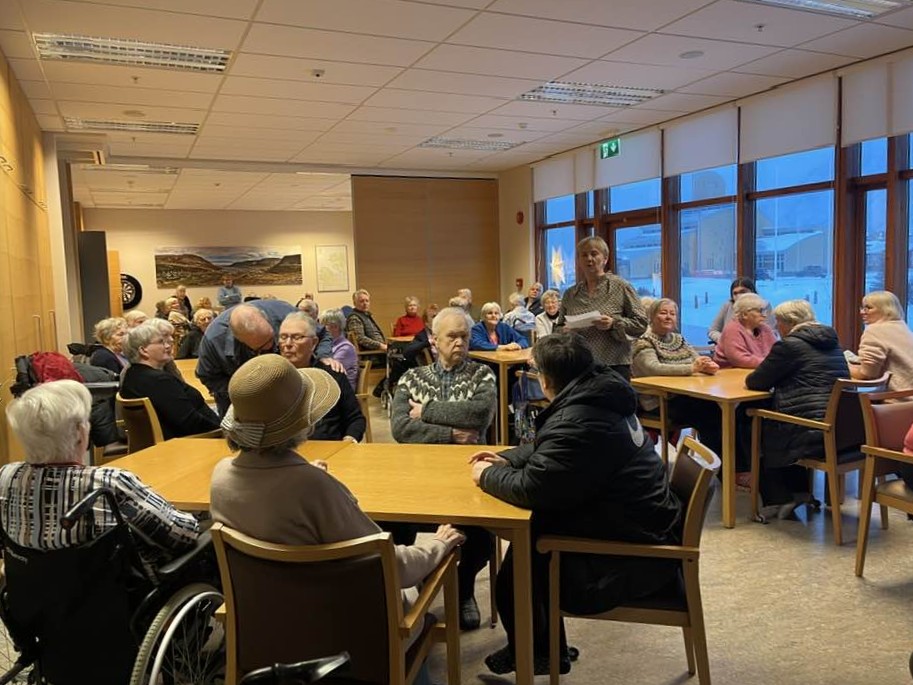 Í vikunni var haldið upp á tíu ára afmæli Hjúkrunarheimilisins Eyrar. Heilbrigðisstofnunin bauð því í kaffi á Eyri. Þar var fjölmenni, íbúar, starfsfólk og íbúar Ísafjarðarbæjar. Ég færði Auði Ólafsdóttur deildarstjóra hjúkrunarheimilisins blómvönd til íbúa Eyrar frá Ísafjarðarbæ í tilefni dagsins.