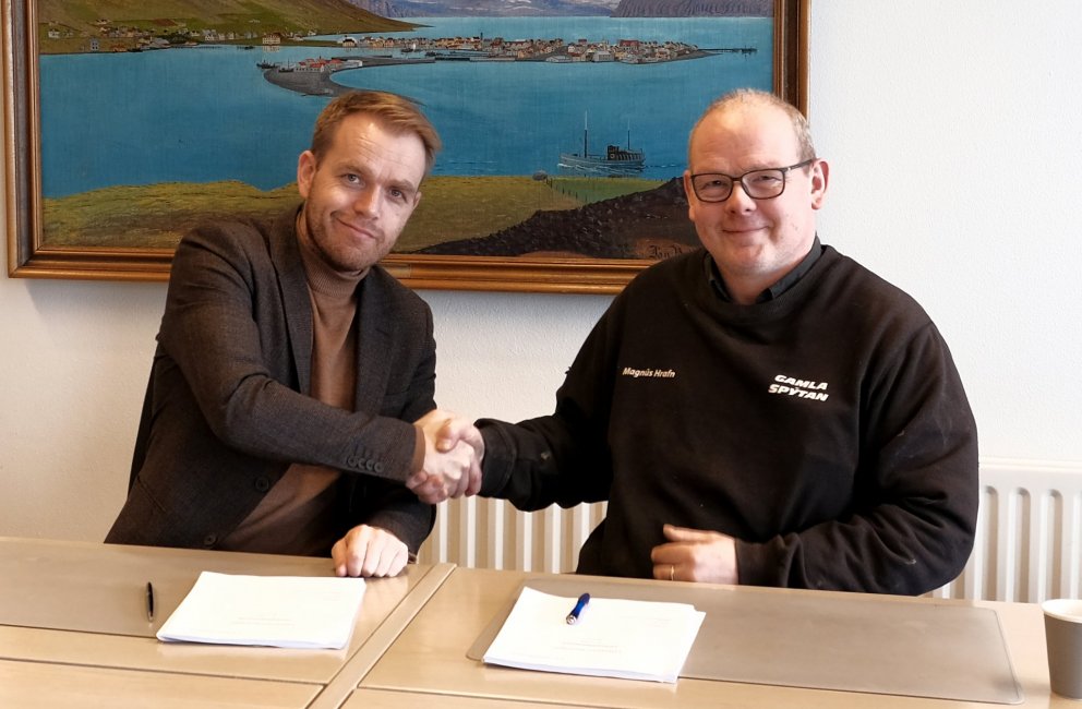Guðmundur Gunnarsson, bæjarstjóri Ísafjarðarbæjar, og Magnús Jónsson, framkvæmdastjóri Gömlu spýtunnar, skrifuðu í dag undir samning um endurinnréttingu og viðbyggingu við leikskólann Eyrarskjól á Ísafirði. Nánar til tekið er um að ræða endurinnréttingu 110 fermetra núverandi húss og byggingu 187 fermetra viðbótar auk 70 fermetra tengigangs. Samkvæmt samningi skal verkinu vera að fullu lokið eigi síðar en 26. maí á næsta ári. Verksamningurinn hljóðar upp á liðlega 225 milljónir og þar sem öll tilboð voru yfir kostnaðaráætlun er samningurinn háður samþykki bæjarstjórnar Ísafjarðarbæjar sem kemur saman á morgun.