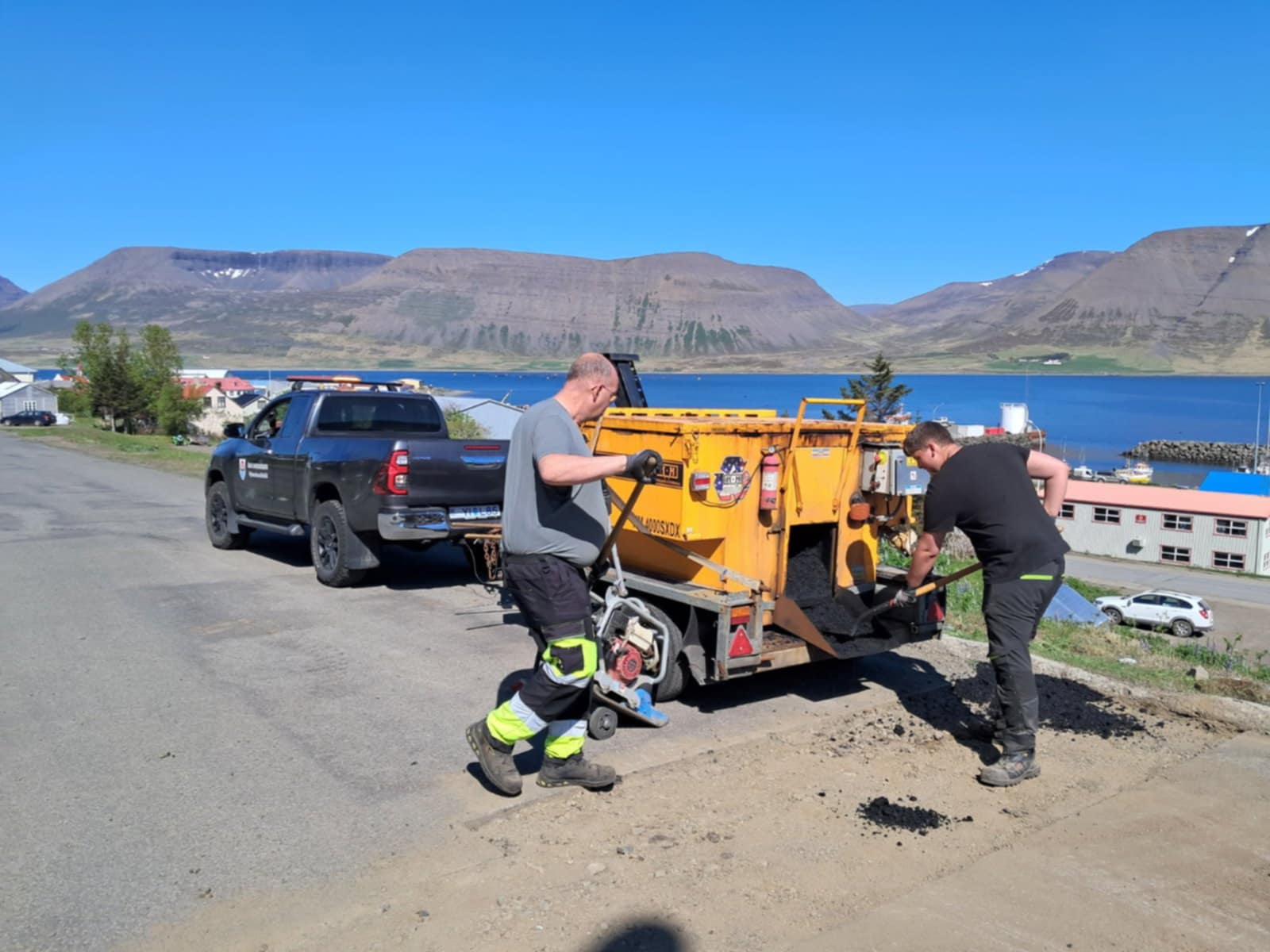 Starfsmenn áhaldahússins hafa í dag sinnt ýmsum hefðbundnum vorverkum á Þingeyri. Meðal annars hafa holur verið fylltar, niðurföll hreinsuð og gangstéttir og götur sópaðar.