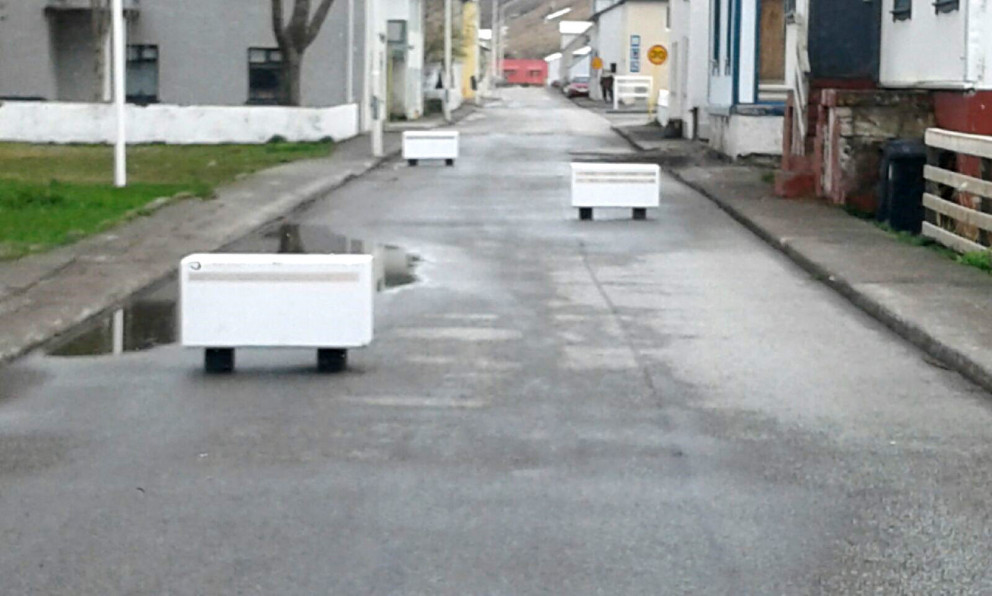 Nú er verið að gera tilraun með hraðaminnkandi aðgerðir á Aðalgötu á Suðureyri. Settar hafa verið upp þrengingar eins og sjást á meðfylgjandi mynd sem Kristján Andri Guðjónsson, forstöðumaður þjónustumiðstöðvar, tók í dag.