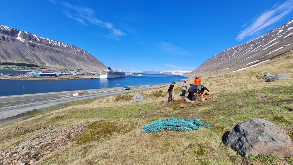Vinna við gerð náttúrustígs upp í Naustahvilft heldur áfram um helgina, áfram undir leiðsögn Kjartans Bollasonar.