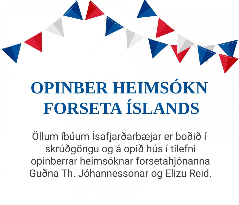 Ísafjarðarbær tekur á móti forsetahjónunum Guðna Th. Jóhannessyni og Elizu Reid sem koma í opinbera heimsókn til sveitarfélagsins 7.-8. júní.