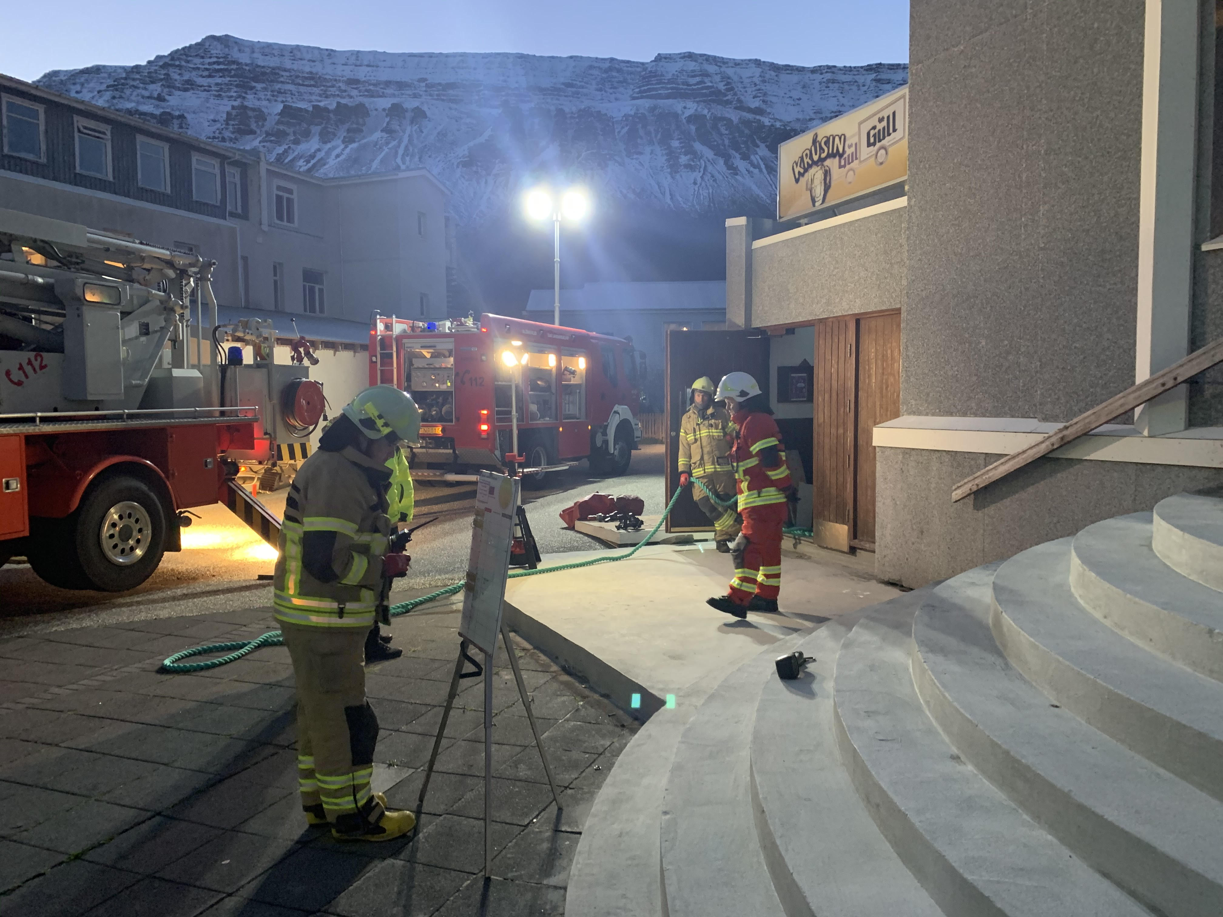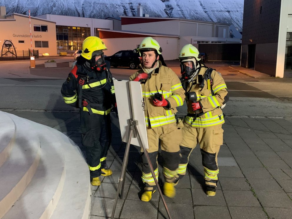 Slökkvilið Ísafjarðar æfði reykköfun í húsnæði Krúsarinnar á Ísafirði um liðna helgi. Alla jafna æfir slökkviliðið einu sinni í mánuði og eru æfingarnar mismunandi í hvert sinn en í þetta sinn var reykköfun með og án hitamyndavéla æfð. Hitamyndavélar greina hita í gegnum reyk og gera notendum kleift að mæla hita á svæði sem ekki er í beinni augnsýn. þannig er hægt að sjá hvar mesti hitinn er og stjórna slökkvistarfi út frá því. Myndavélarnar geta einnig greint hita frá manneskjum sem leitað er að.