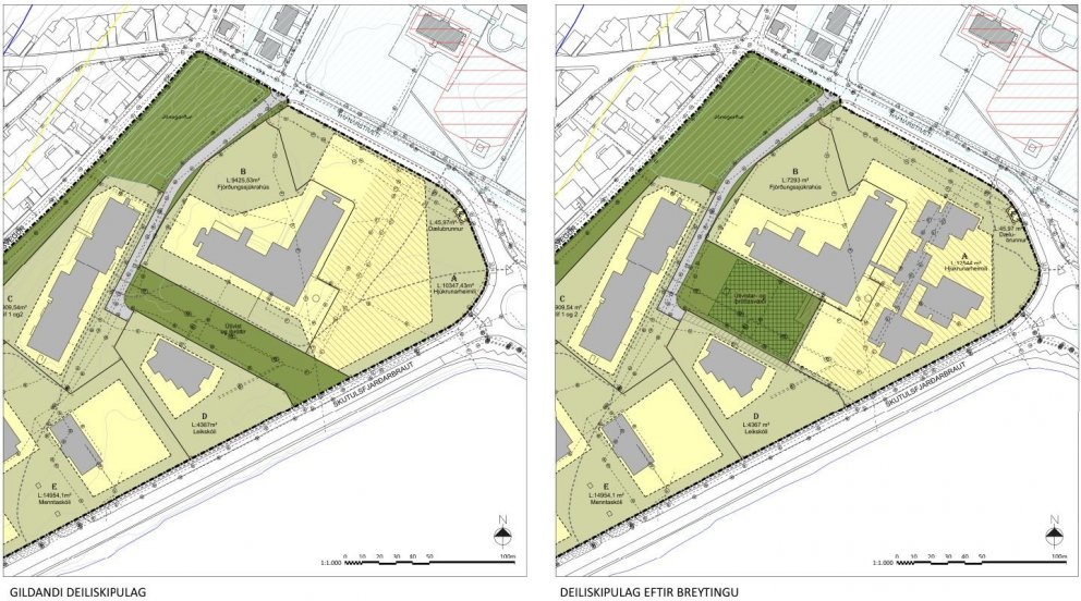 Breytingin felst í því að lóðarmörkum og byggingarreitum lóða A og B er breytt til að auka svigrúm fyrir fjórðu álmu hjúkrunarheimilisins Eyrar. Einnig gert ráð fyrir að auka svigrúm fyrir útivist og íþróttir við suðurmörk lóðar B.