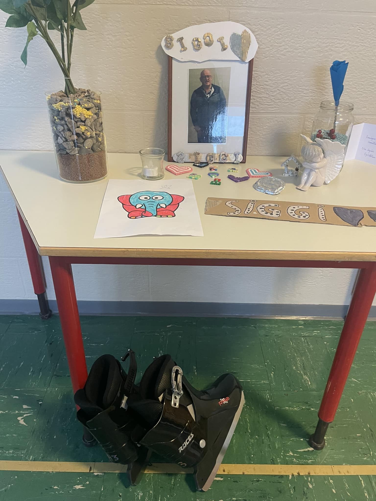 Nemendur við Grunnskóla Önundarfjarðar útbjuggu þetta minningarborð um Sigga Habb.