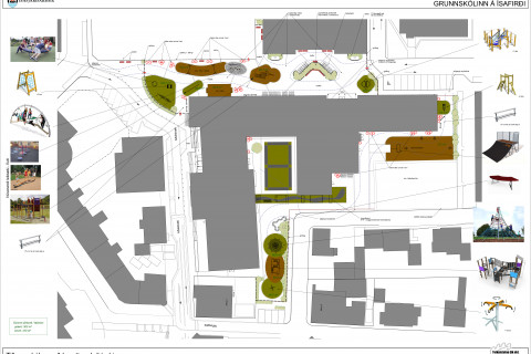 Framkvæmdir við uppsetningu nýrra leiktækja á lóð Grunnskólans á Ísafirði eru hafnar og er það Kubbu…