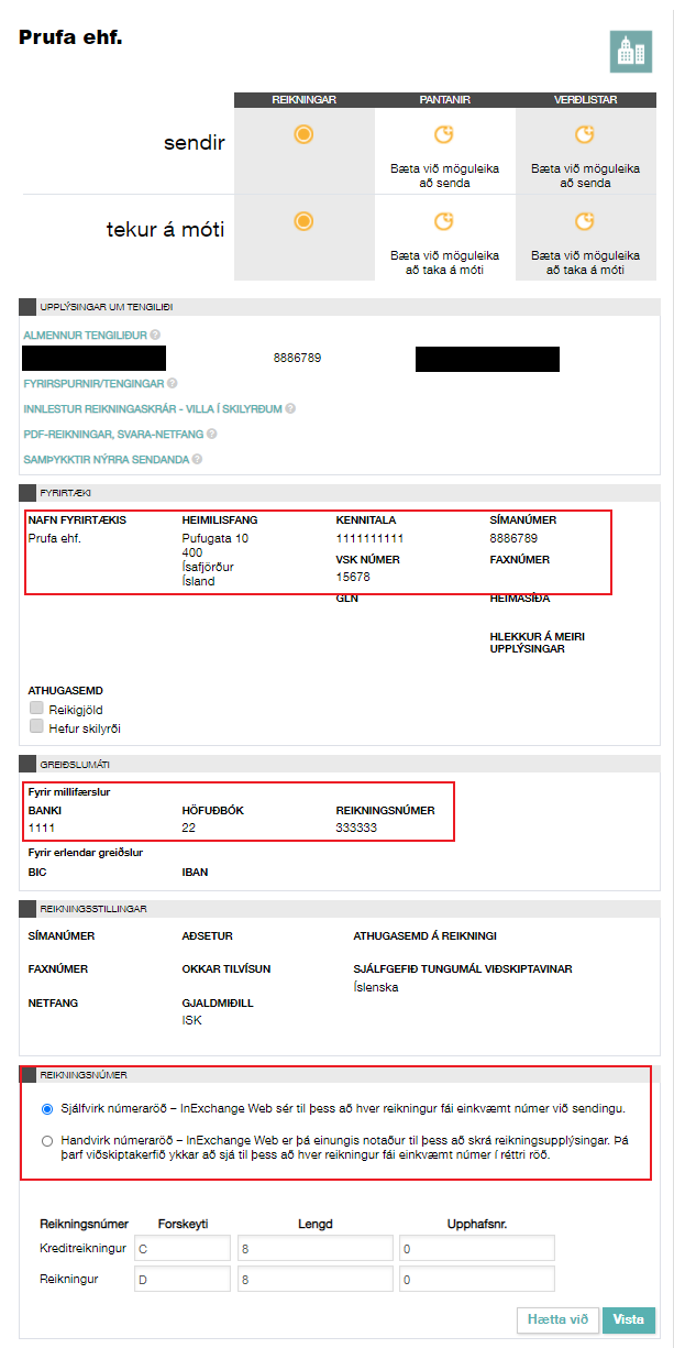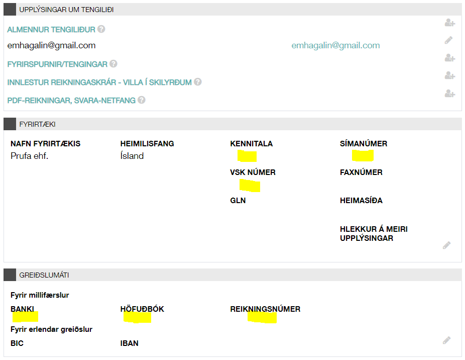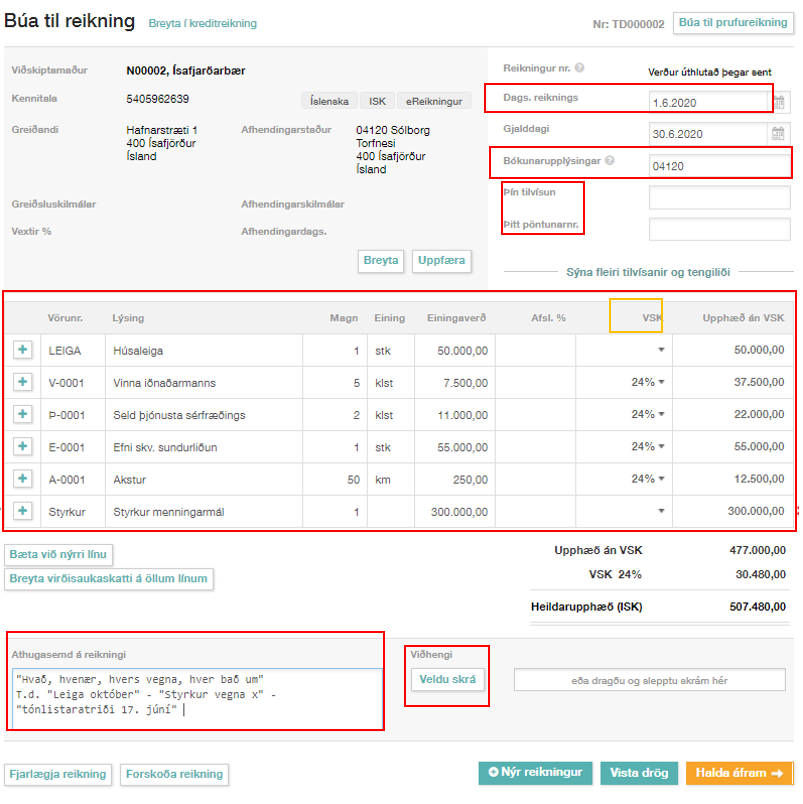 Nauðsynlegar upplýsingar á reikningi