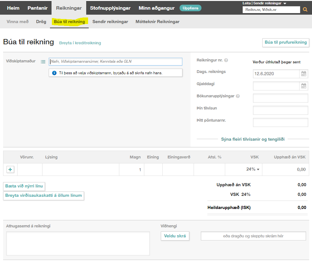 Aðilum sem eru ekki með þjónustu skeytamiðlunar geta sent reikninga í gegnum reikningagátt.