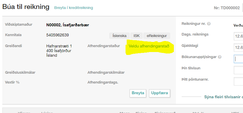 - Númer kostnaðarstaðar / deildar (ef uppgefið af kaupanda)
