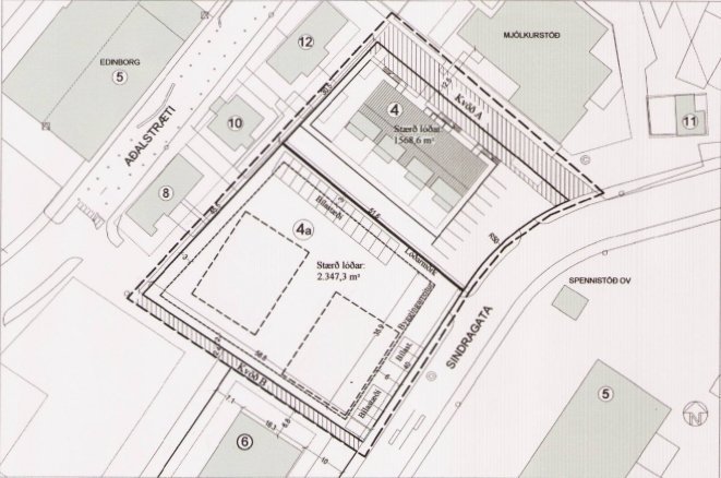 Sindragata 4a er 2347,3 m² lóð þar sem gert er ráð tveimur íbúðarbyggingum með samtals 20-30 íbúðum samkvæmt deiliskipulagi.