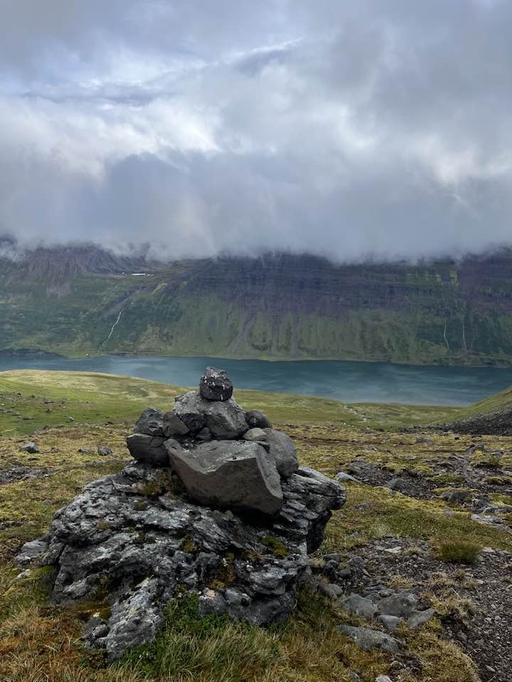 Við tókum nefnilega daginn snemma á laugardag, keyrðum inn að Kvíanesi í Súgandafirði (rétt utan við Botn) og gengum upp Kvíanesdal, yfir Grímsdalsheiði og niður Garðadal í Önundarfirði og til Flateyrar á markaðinn á Götuhátíð. Hversu svalt er það? Nema mér og eiginmanninum tókst að villast í þoku uppá fjalli sem var samt allt í lagi, gengum nokkra aukakílómetra, sem var gott því mér tekst alltaf að fókusa svo vel á göngu, hugsa.