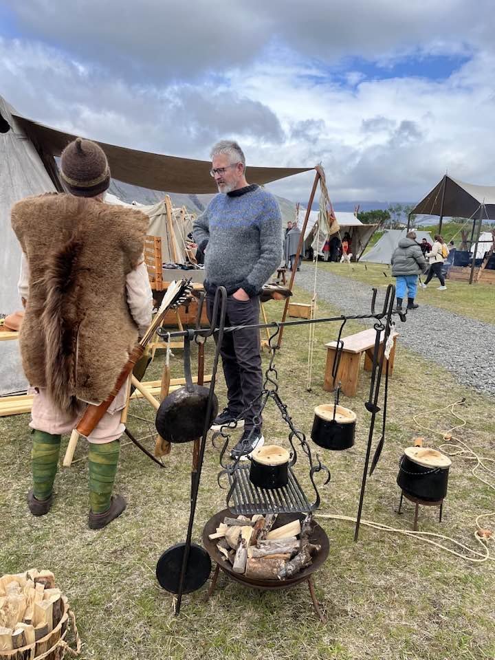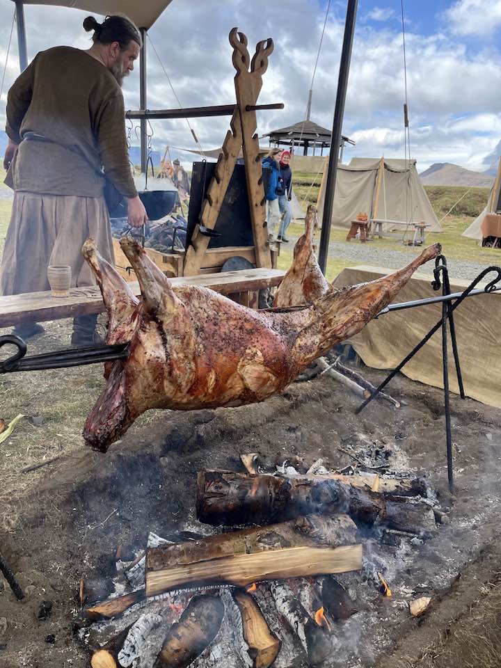 Á víkingahátíðinni á Þingeyri var verið að heilgrilla lamb fyrir kvöldið.