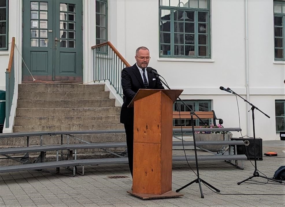 Greipur Gíslason, stjórnandi tónlistarhátíðarinnar Við Djúpið, flutti hátíðarræðu á þjóðhátíðarsamkomu á Eyrartúni þann 17. júní 2023.