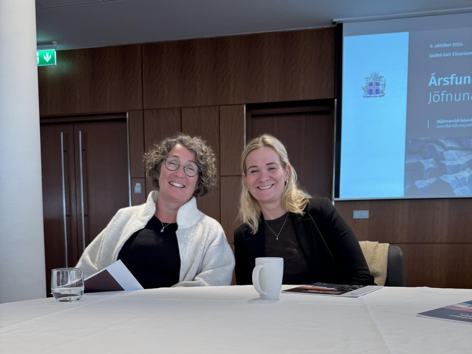 Nanný Arna Guðmundsdóttir og Gerður Björk Sveinsdóttir, bæjarstjóri Vesturbyggðar, á ársfundi Jöfnunarsjóðs.