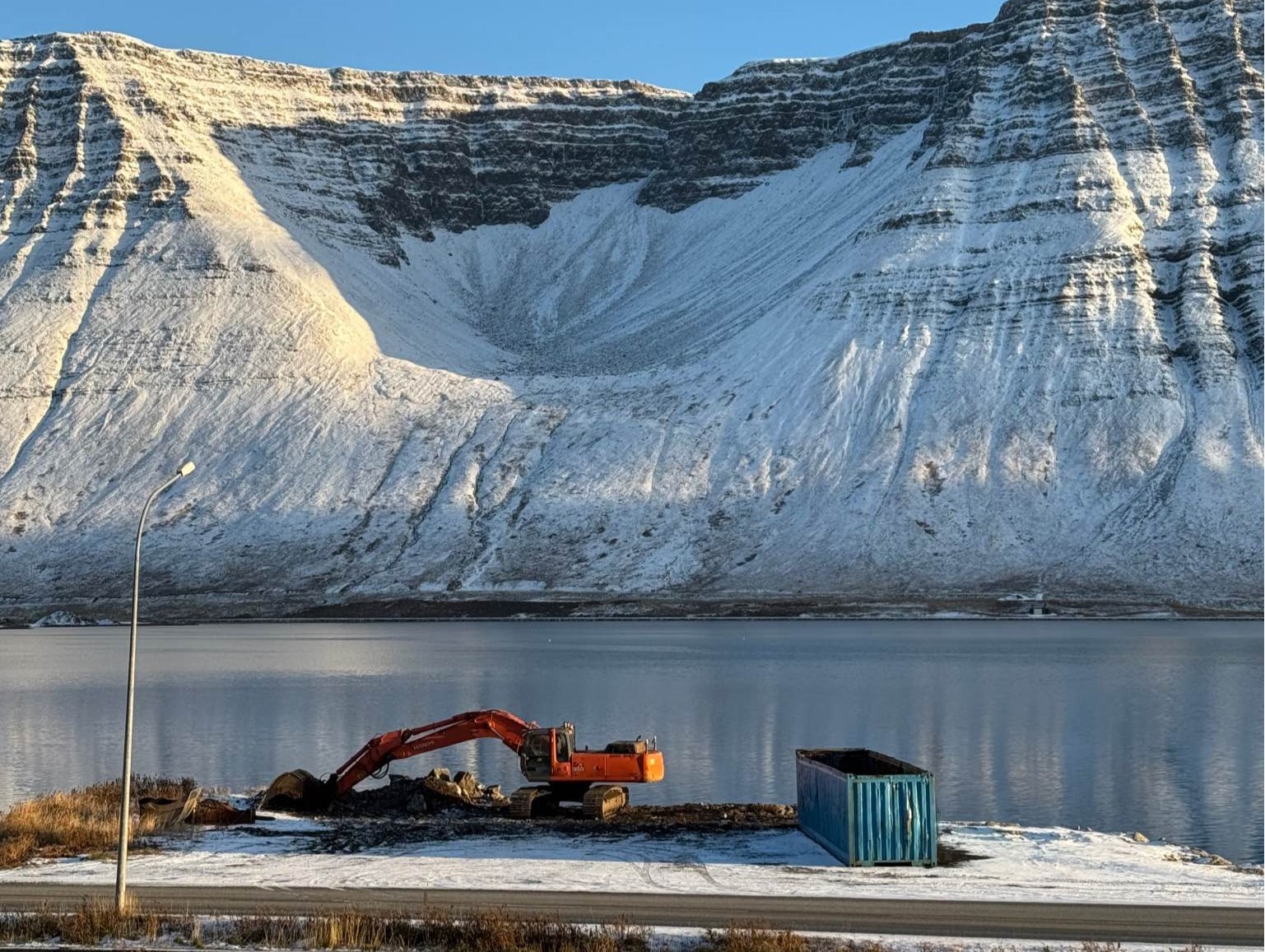 Tiltekt við Grænagarðsbryggju. Á undanförnum árum hefur safnast upp dót og rusl á gömlu Grænagarðsbryggjunni sem er einnig ónýt. En nú er mikil tiltekt í gangi og búið að taka bryggjuna. Það hefur verið leiðinlegt að sjá draslið þarna og þá sérstaklega þar sem þetta er aðkoman í bæinn.