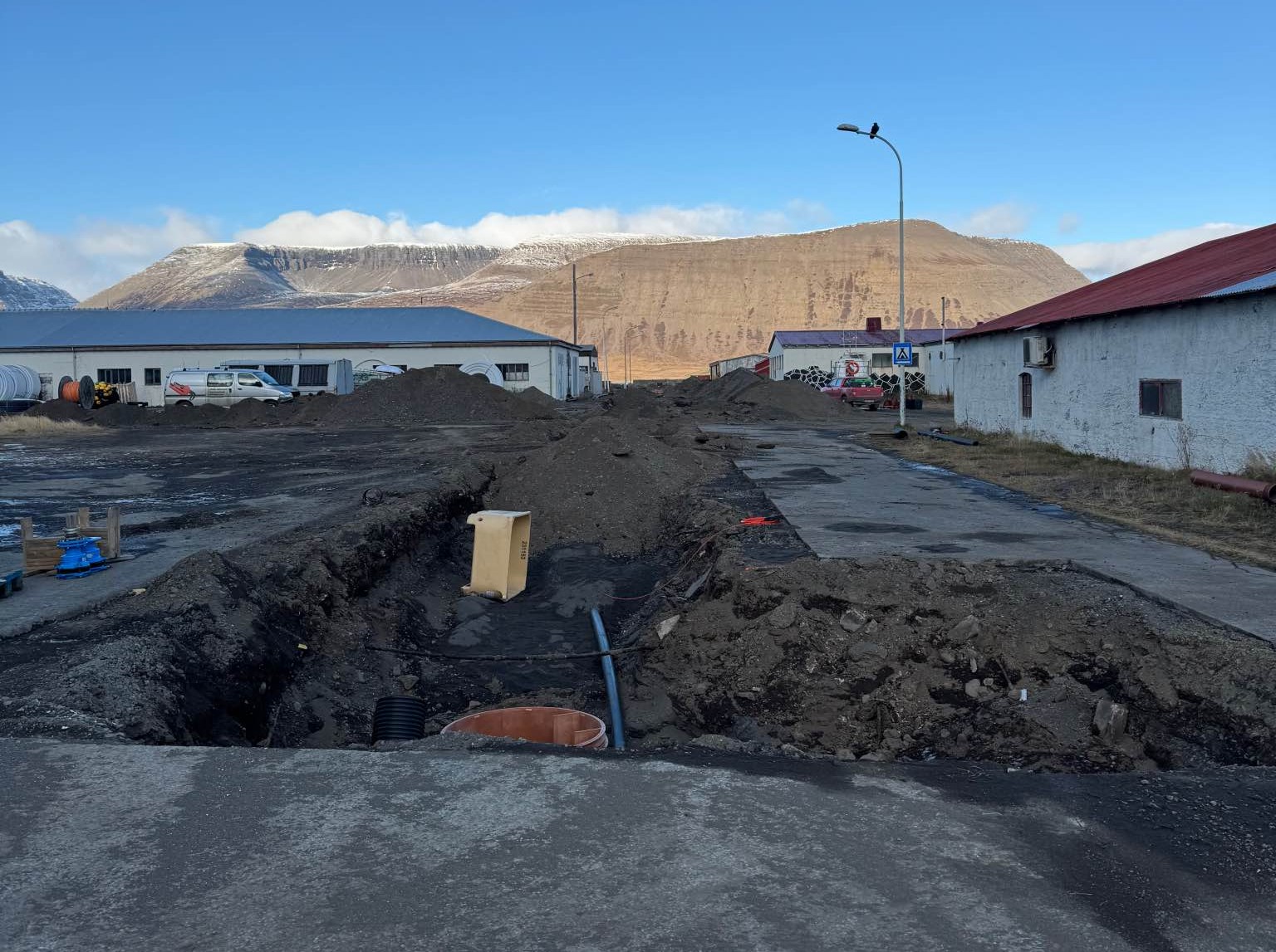 Ég átti góðan fund með Guðrúnu, formanni hverfisráðsins á Þingeyri, þar sem við fórum yfir ýmis mál tengd því. Ég smellti mynd af einni stórri framkvæmd sem nú er í gangi í Hafnarstrætinu. Þar er verið gera klárt fyrir nýja fráveitulögn og brunna, auk hreinsistöðvarinnar.