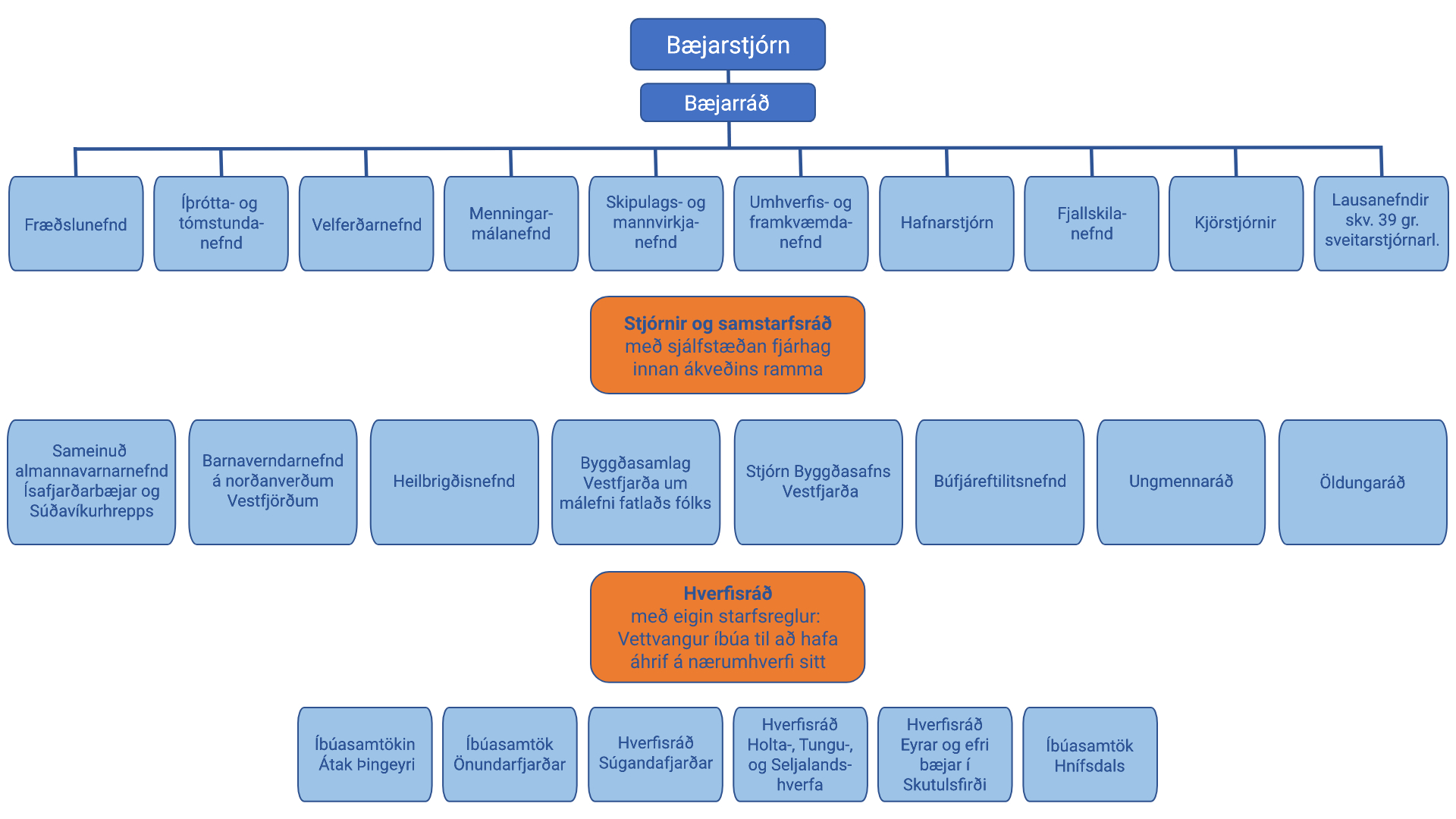 Stjórnkerfi Ísafjarðarbæjar er skipað kjörnum fulltrúum annars vegar og embættismönnum hins vegar.
