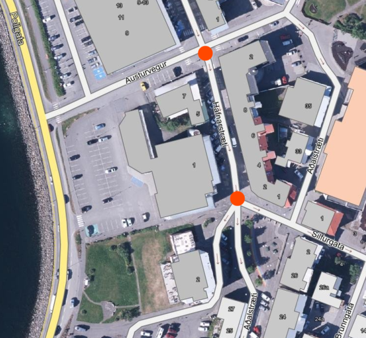 Ástæða lokunarinnar eru glerskipti Hafnarstrætismegin í Stjórnsýsluhúsinu. Því miður er ekki hægt að fara í þessa framkvæmd án þess að loka fyrir umferðina. Verktaki mun reyna að ljúka verkinu eins fljótt og mögulegt er og opna götuna og bílastæðin á kvöldin, ef aðstæður leyfa.
