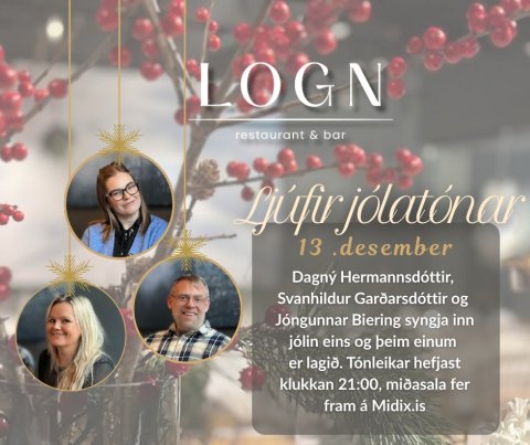 Huggulegir jólatónleikar á Logni laugardaginn 13. desember kl. 21:00.