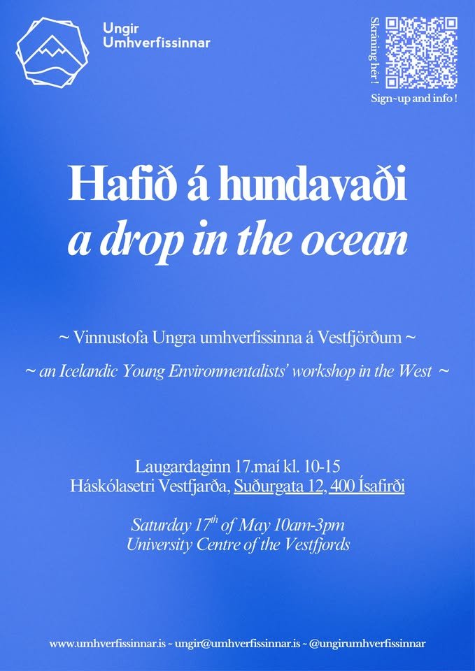 Ungir umhverfissinnar bjóða til fræðslu- og vinnustofu um framtíð hafsins ~ fyrir ungt fólk á aldrinum 15-35 ára, á Ísafirði laugardaginn 17. maí !