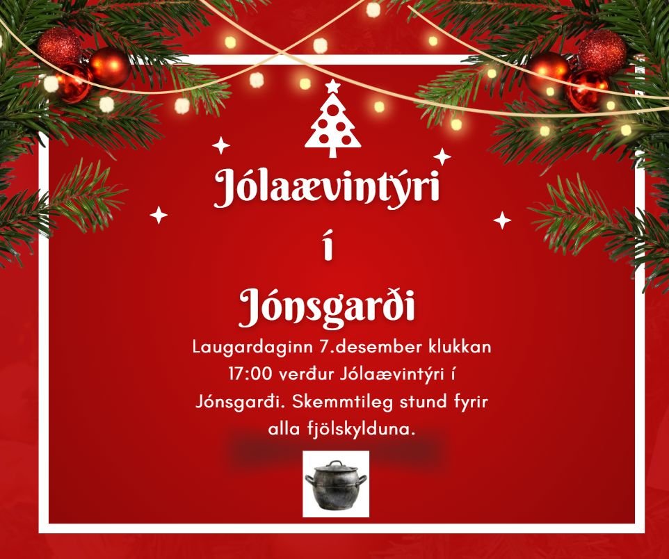 Þann 7. desember verður boðið upp á jólaævintýri í Jónsgarði. Það má segja að þetta sé samfélags- tilraunaverkefni. En hugmyndin er að fjölskyldur, vinir og öll sem hafa áhuga geti komið í Jónsgarð og hlustað á jólasögu sagða af jólasveininum sjálfum.