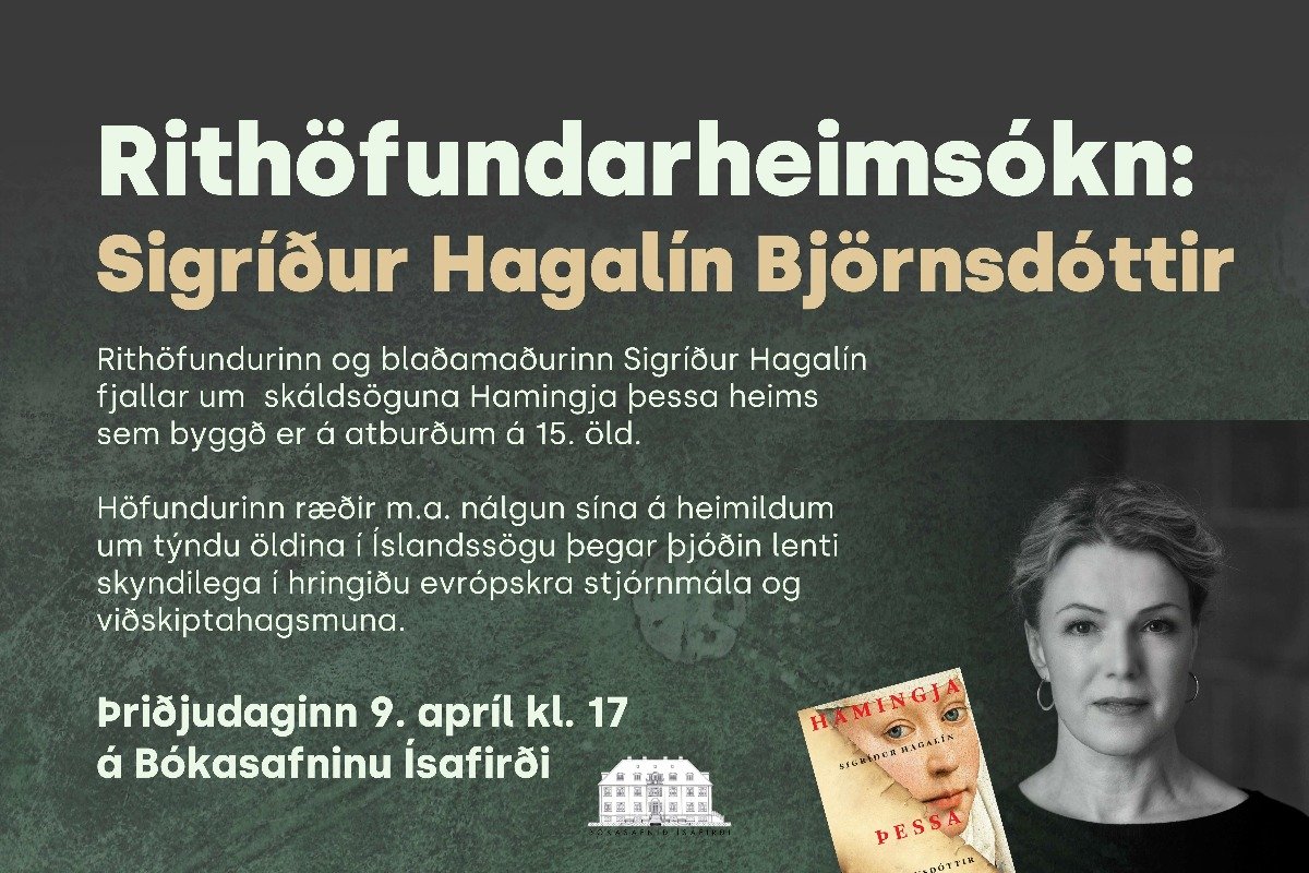 Þriðjudaginn 9. apríl kl. 17 fáum við rithöfundinn og blaðamanninn Sigríði Hagalín Björnsdóttur í heimsókn en hún ætlar að fjalla um bókina Hamingja þessa heims - sögulega skáldsögu sem gerist að miklu leyti á fimmtándu öld. Fimmtánda öldin er öldin sem týndist í Íslandssögunni, þegar þjóðin lenti skyndilega í hringiðu evrópskra stjórnmála og viðskiptahagsmuna. Á Íslandi ríkti óöld, þar sem enskir kaupmenn, sjóræningjar, útsendarar Danakonungs og innlendir höfðingjar tókust á um völdin.