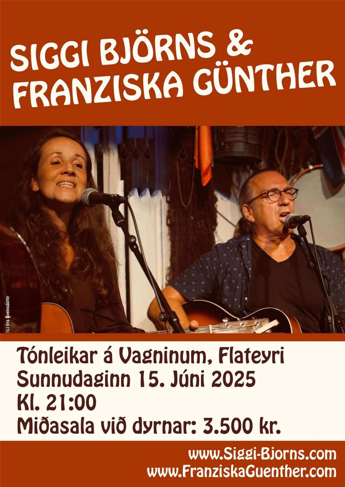 Siggi Björns og Franziska Günther halda tónleika á Vagni allra landsmanna sunnudagskvöldið 15. júní.