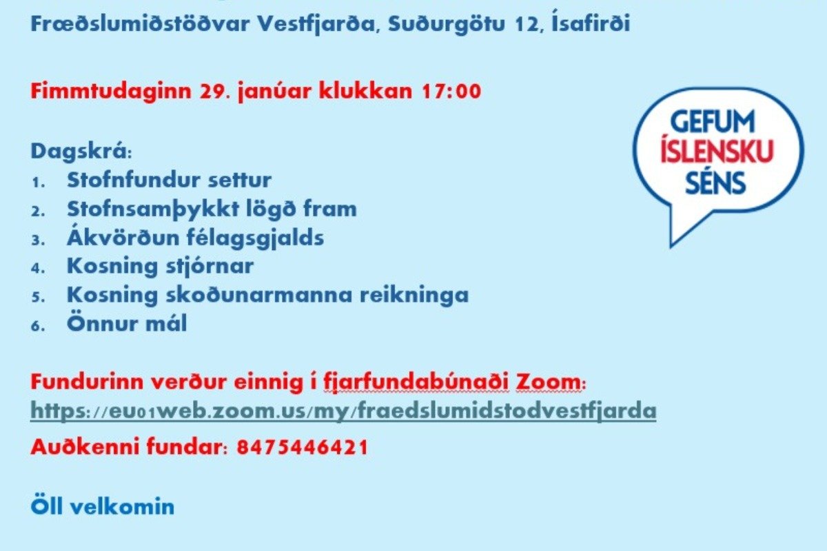 Stofnfundur félags um Gefum íslensku séns, verður haldinn í húsnæði Fræðslumiðstöðvar Vestfjarða, Suðurgötu 12, Ísafirði